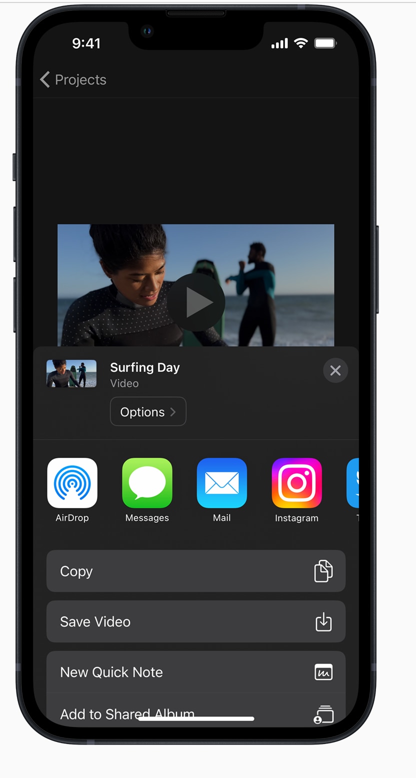 iPhone/iPadで開始したプロジェクトをMacに引き継いで編集する「AirDrop連携」も強力な機能です。モバイル版で「プロジェクトを共有」からAirDropを選択し、Macで受け取ることで、Mac版iMovieでプロジェクトを開けます。