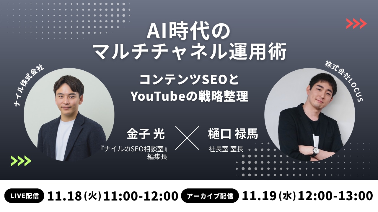 本ウェビナーでは、動画マーケティングで豊富な実績を持つ株式会社LOCUSと、SEOに強みを持つナイル株式会社が共催し、